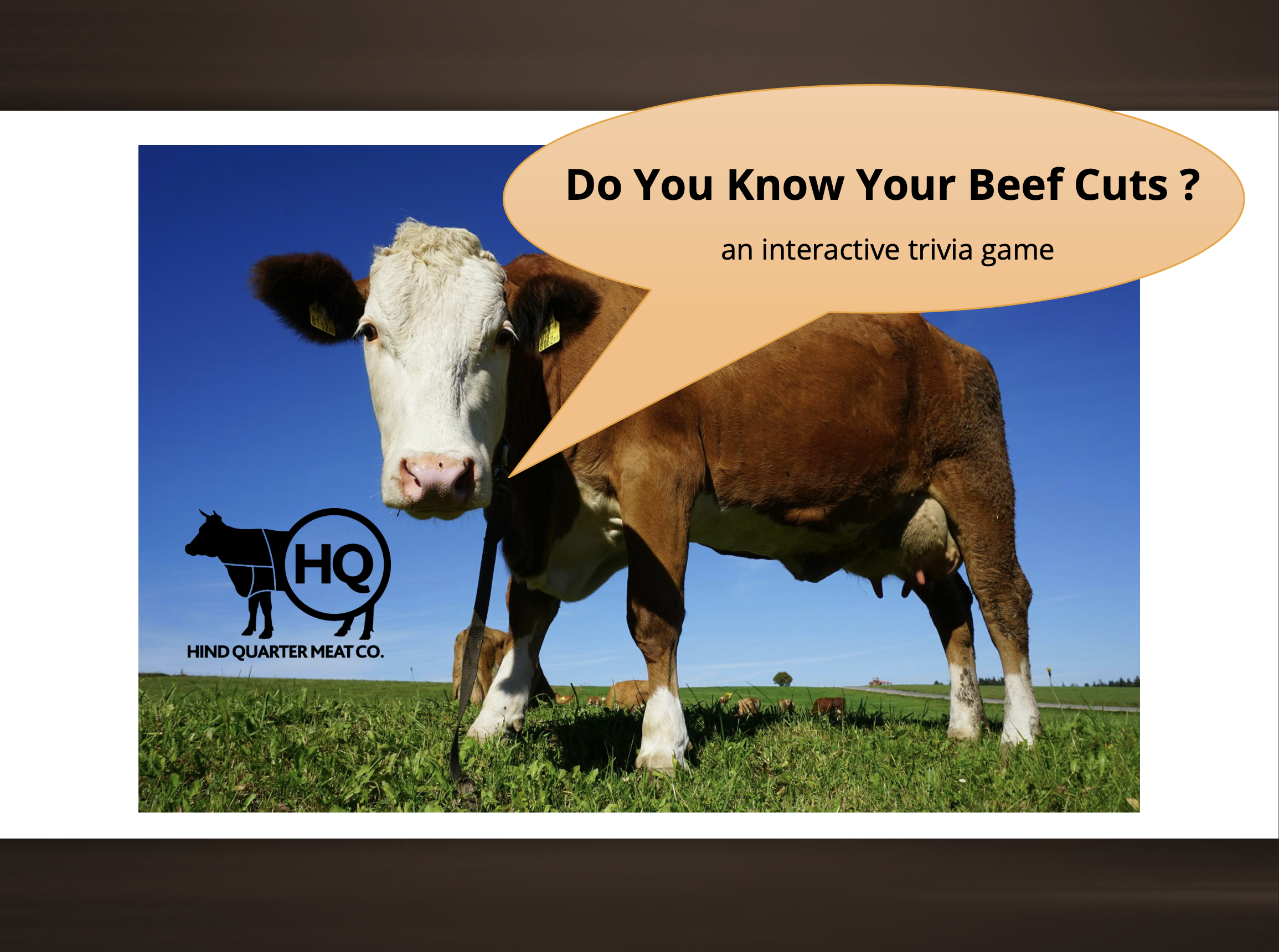 Beef Cuts Trivia Game Try out our hilarious trivia game! Whether you're a home cook or a culinary professional, this game will beef up your primal cut knowledge! Click the picture to play!